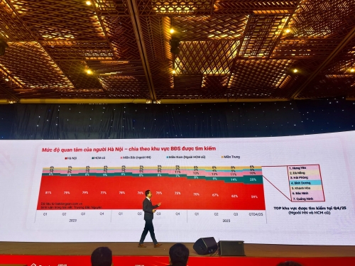 Người Hà Nội đang giảm quan tâm đến BĐS tại chính Hà Nội và đi vào gia tăng tìm kiếm BDS miền Nam. Chắc chắn người Hà Nội vẫn sẽ quan tâm nhất tại chính Hà Nội, hiện 59% sự quan tâm, tuy nhiên sự quan tâm này đã giảm đáng kể từ 81% ở Q1/2023 xuống còn 59% ở Q4/2025. Họ dành sự quan tâm gia tăng đến: - Các tỉnh miền Bắc (ngoài HN) tăng gấp đôi nhu cầu - Ở TP.HCM cũ đang tăng mạnh: từ 5% -> 20% tức tăng gấp 4 lần Bên cạnh đó các khu vực được tìm kiếm nhiều nhất ngoài HN và HCM là 1) Hưng Yên 2) Đà Nẵng 3) Hải Phòng 4) Bình Dương Insight từ Hội nghị bất động sản Việt Nam 2025 đang diễn ra, Nguồn cập nhật từ Trương Đắc Nguyên