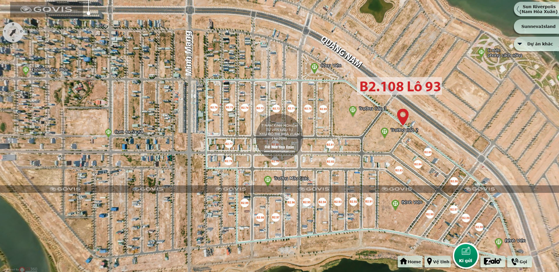 Vị trí lô đất B2.108 lô 93 từ bản đồ phân lô Nam Hòa Xuân