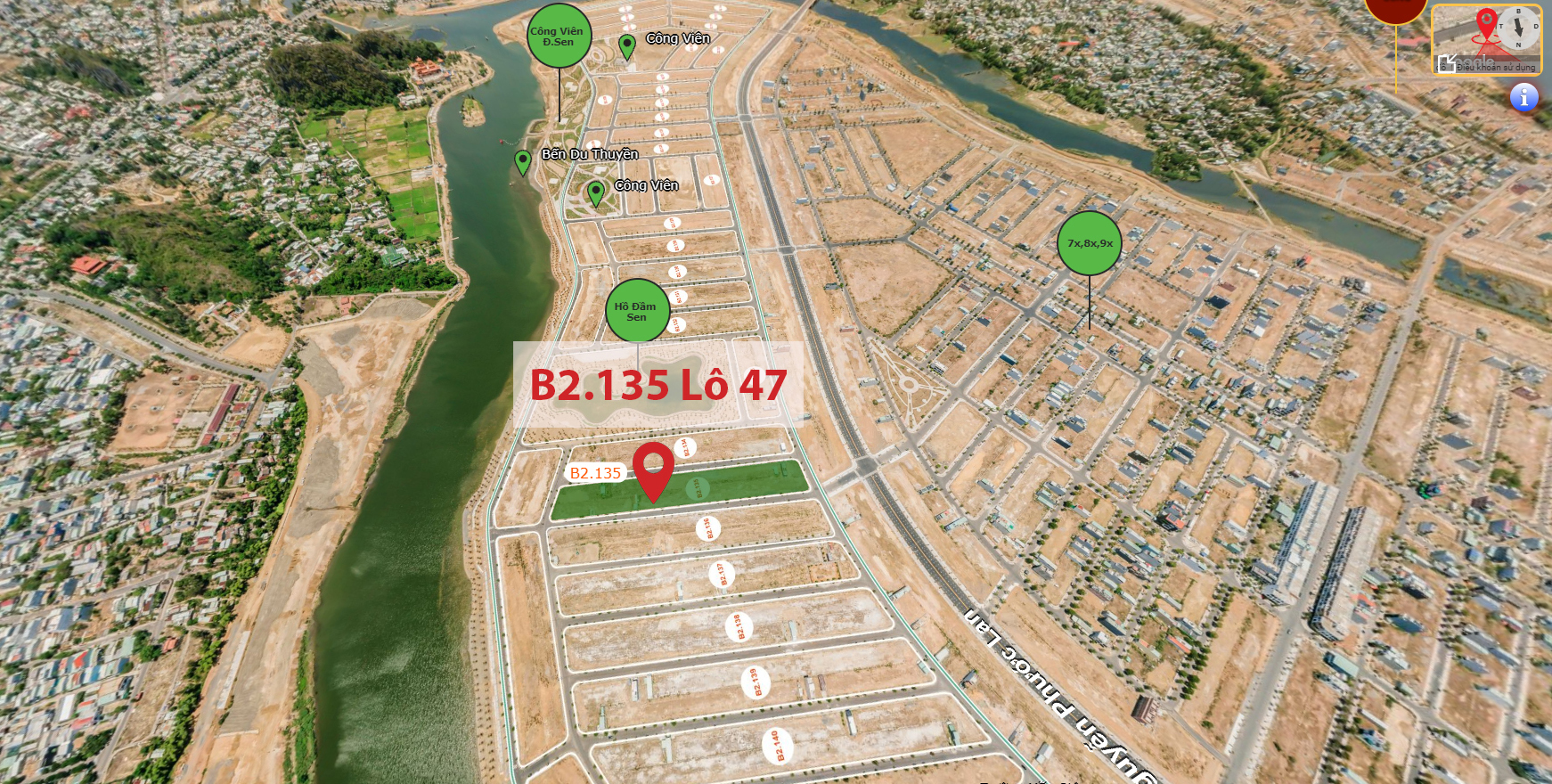 Vị trí lô đất B2.135 lô 47 trên Vr 360 Đất Nền Hòa Xuân