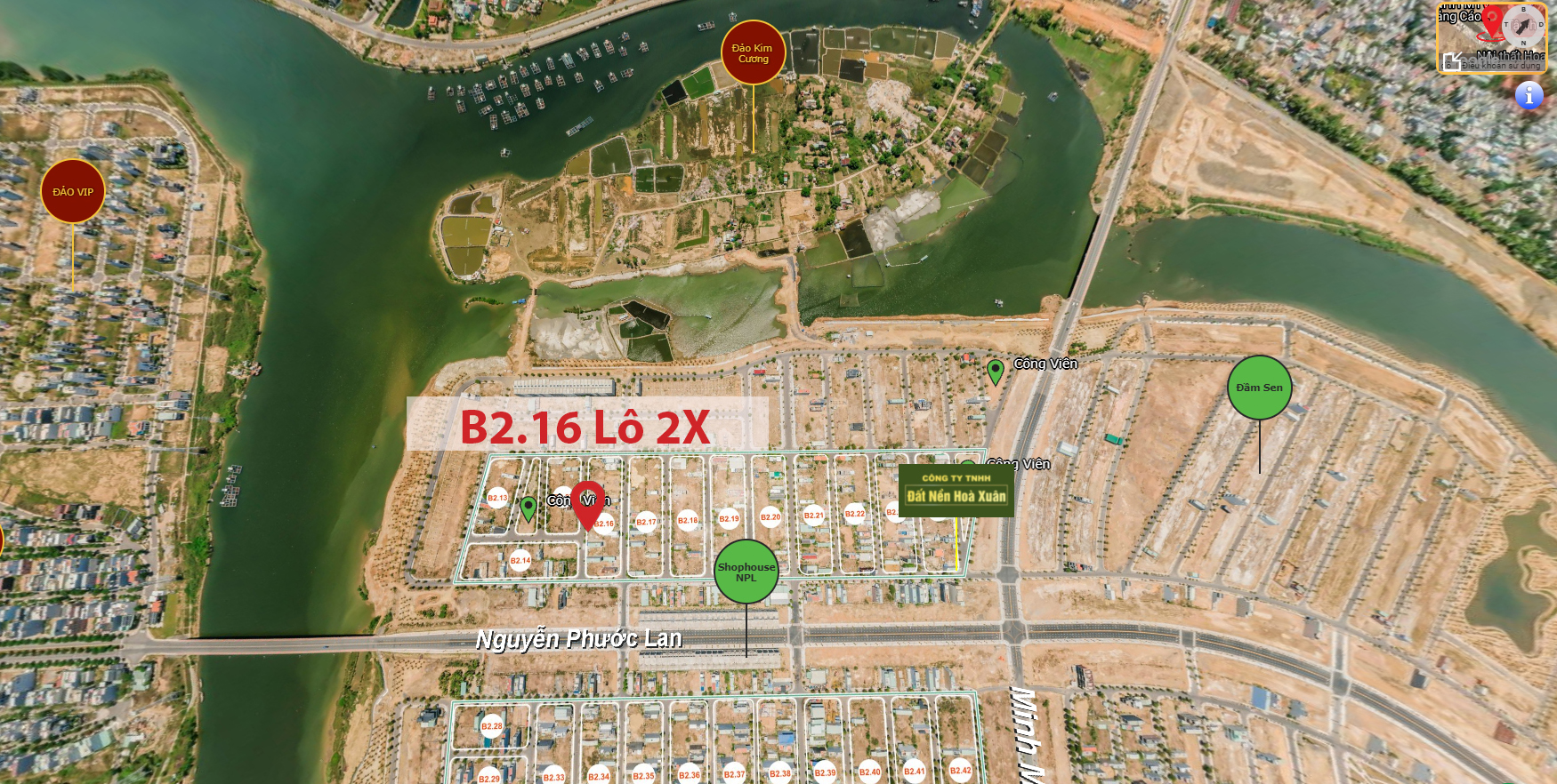 Vị trí lô đất thực tế trên bản đồ phân lô Nam Hòa Xuân