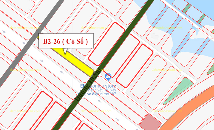 Vị trí lô đất B2.26 lô 27 từ bản đồ phân lô Nam Hòa Xuân
