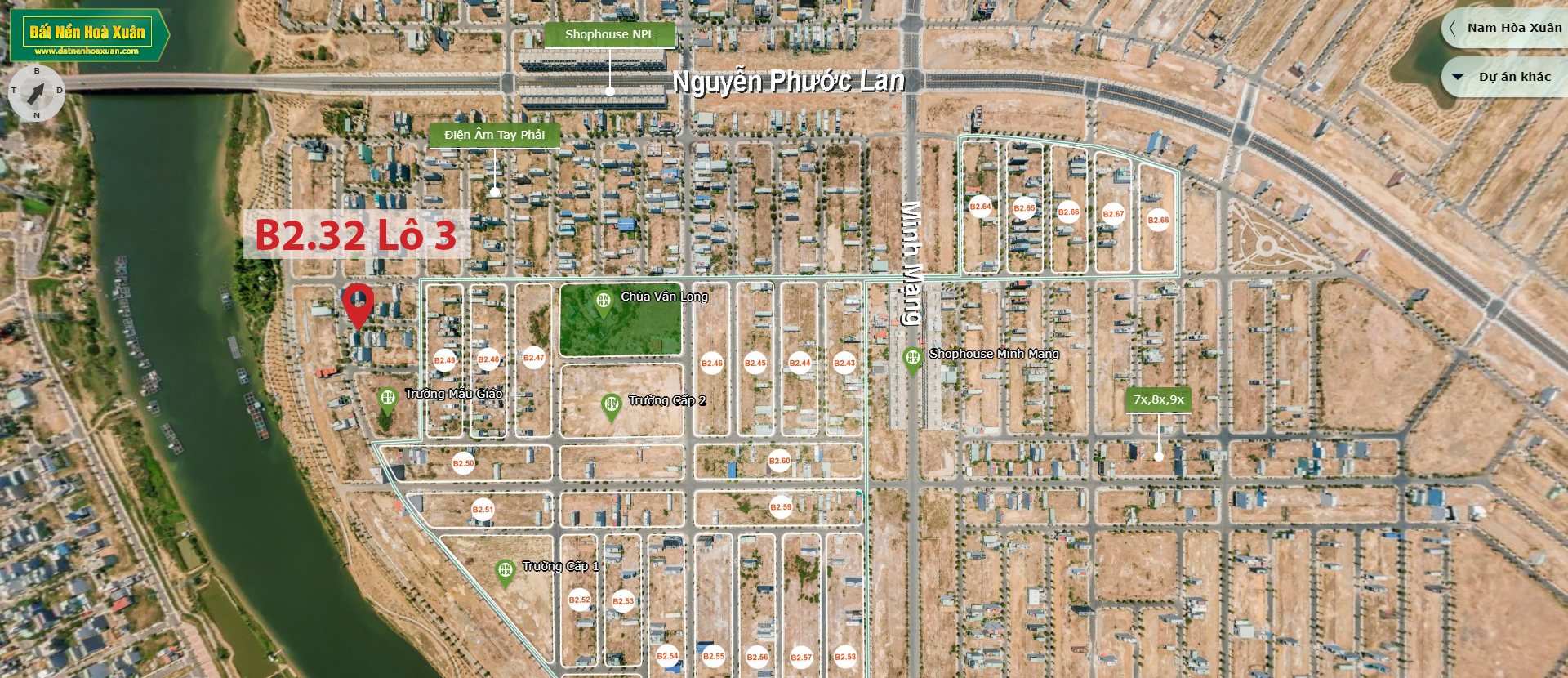 Vị trí lô đất B2.32 lô 3 từ bản đồ phân lô Nam Hòa Xuân