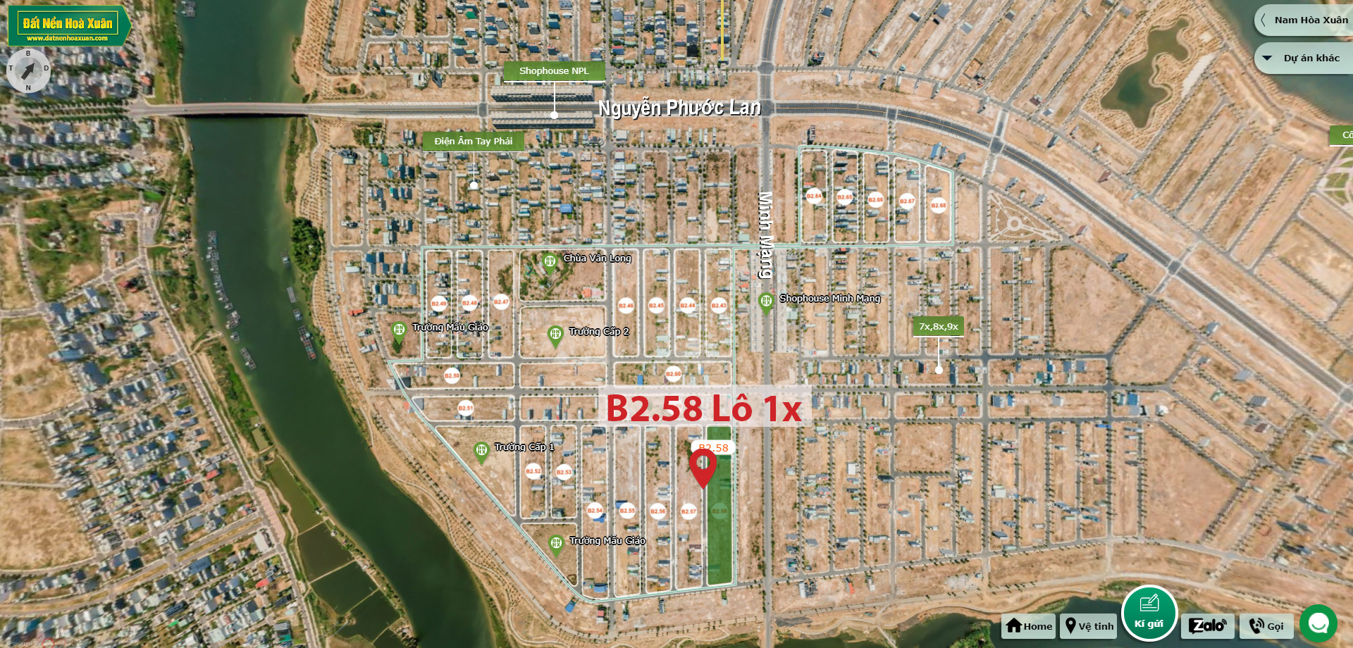 Vị trí lô đất B2.58 lô 1x trên bản đồ phân lô Nam Hòa Xuân