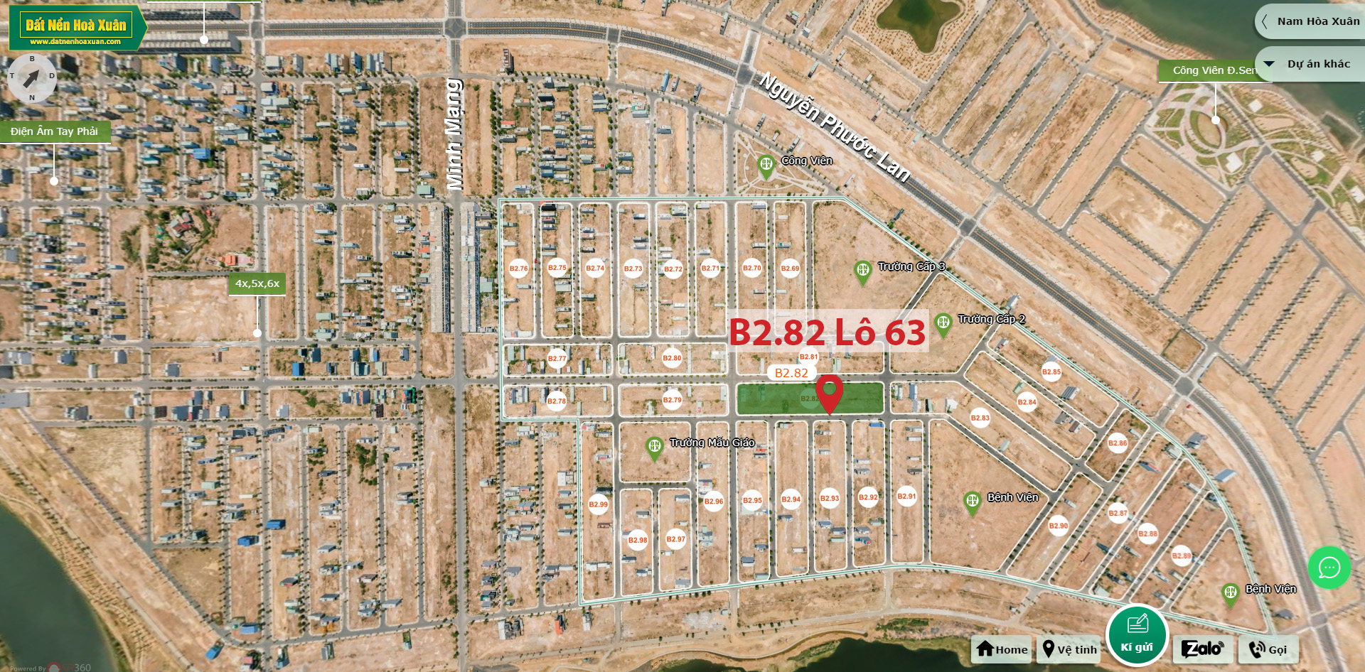 Vị trí lô đất B2.82 lô 63 trên bản đồ phân lô Nam Hòa Xuân