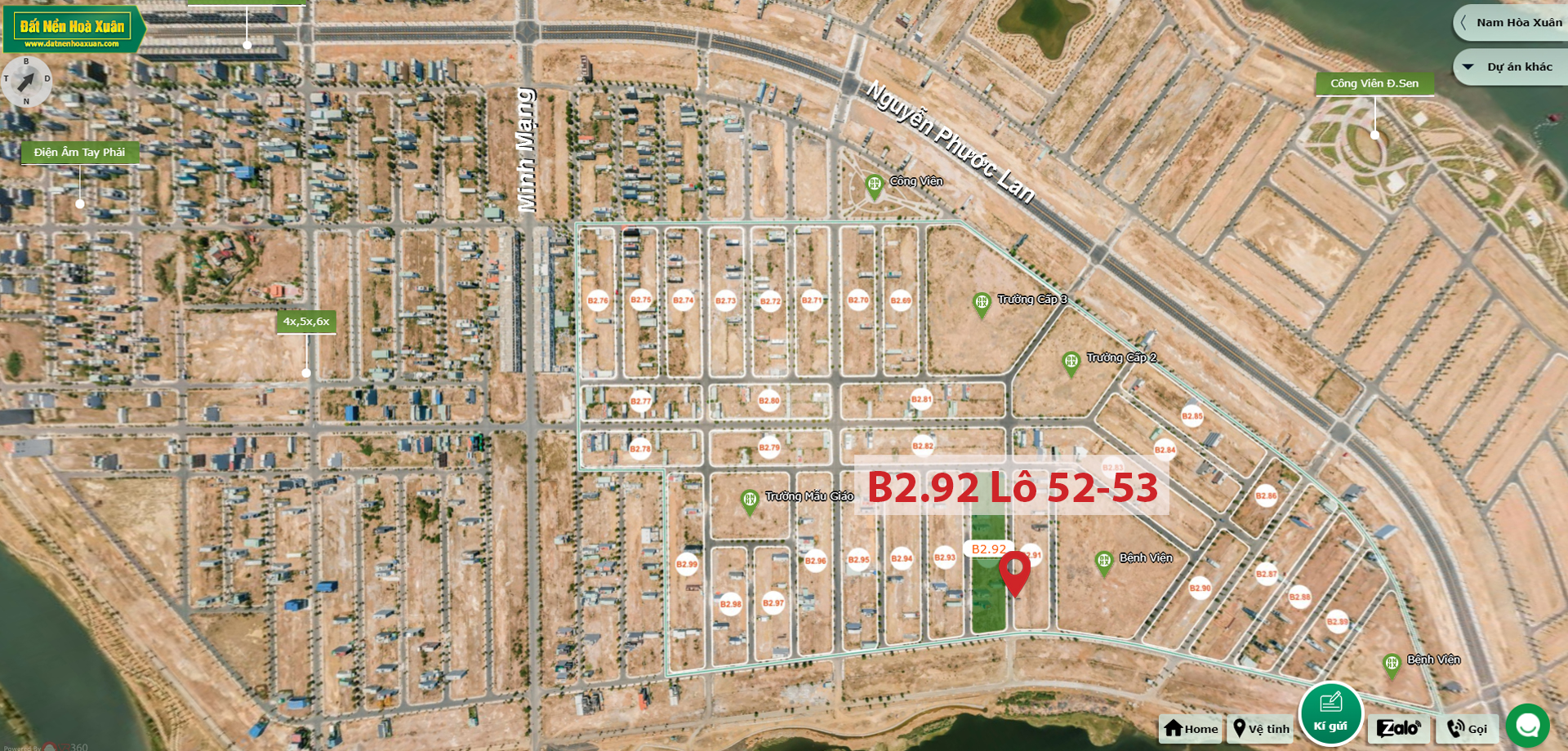Vị trí lô đất B2.92 lô 52-53 từ bản đồ phân lô Nam Hòa Xuân
