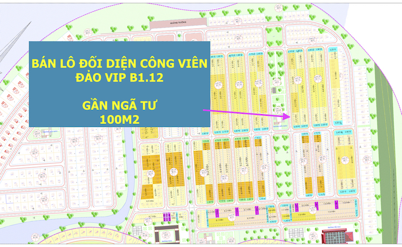 Bán lô gần góc ngã tư nhìn công viên rất đẹp. Vị trí từ đường chính Nguyễn Phước Lan vào tiện lợi nhìn công viên B1.12 đảo VIP.