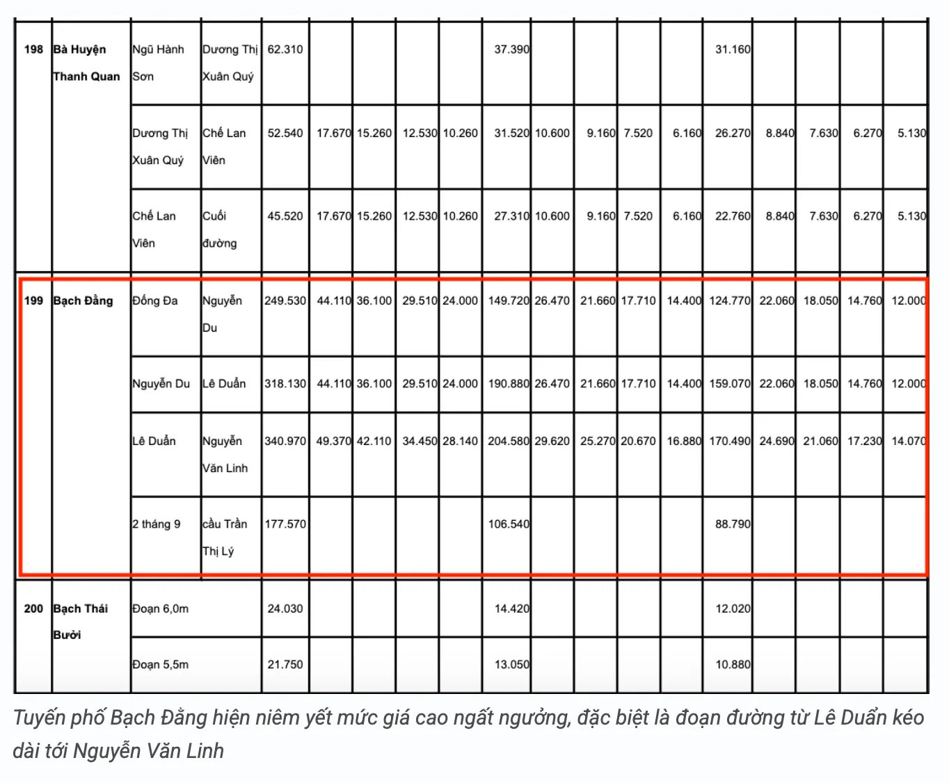 Hãy nhìn vào những con số biết nói. Vị trí đắt giá nhất trên tuyến đường Bạch Đằng, đoạn từ Lê Duẩn đến Nguyễn Văn Linh, được định giá hơn 340 triệu đồng/m². Con số này không chỉ khẳng định vị thế kim cương của khu vực trung tâm mà còn là một cột mốc, một "đỉnh" tham chiếu cho toàn bộ thị trường. Nó cho thấy sức bật và tiềm năng giá trị của bất động sản Đà Nẵng vẫn còn rất lớn.