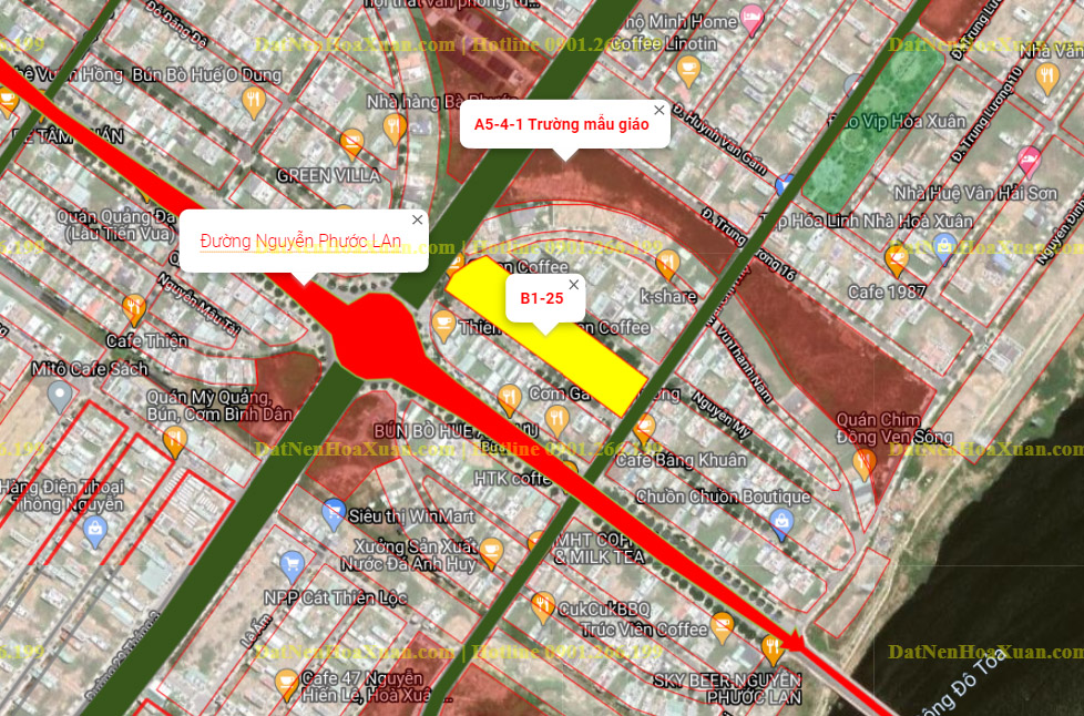 Vị trí lô góc B1.25 lô 1 trên bản đồ phân lô Hòa Xuân