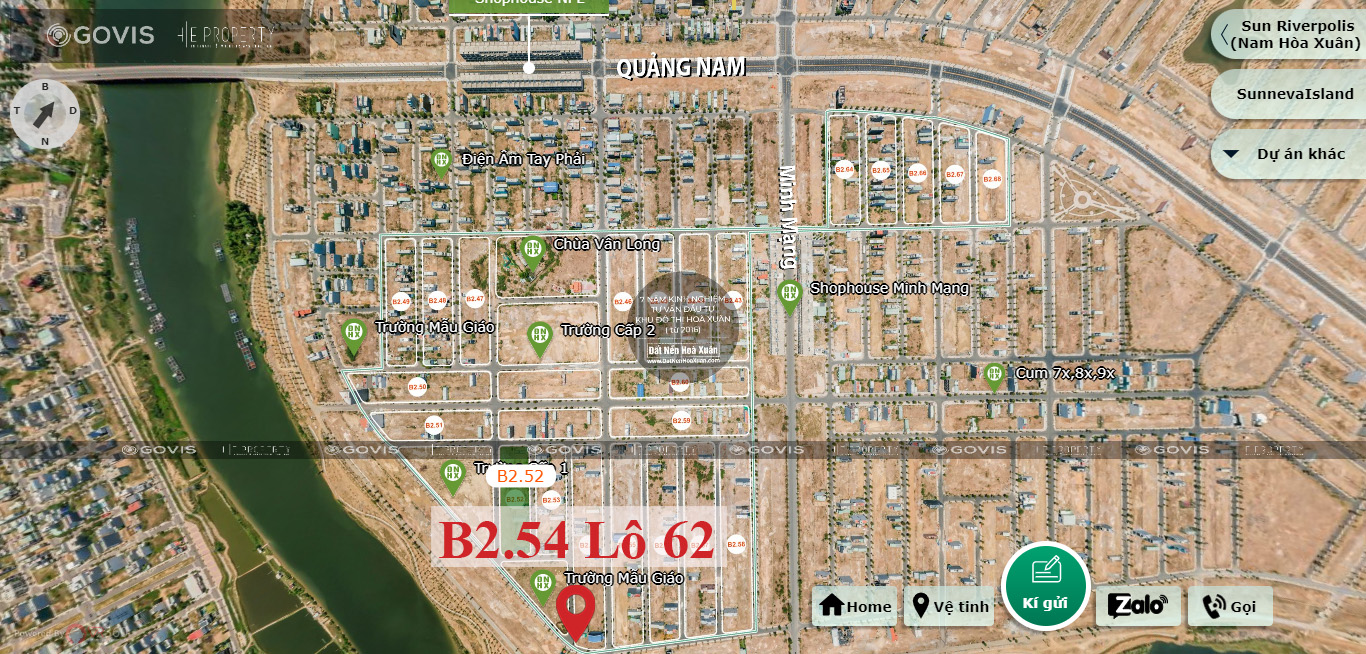 Lô đất góc B2.54 lô 62 - Khu đô thị Nam Hòa Xuân. Lô đất có vị trí đắc địa, gần đường thông 10m5 thông thẳng ra sông và tọa lạc ở vị trí gần cụm trường học.