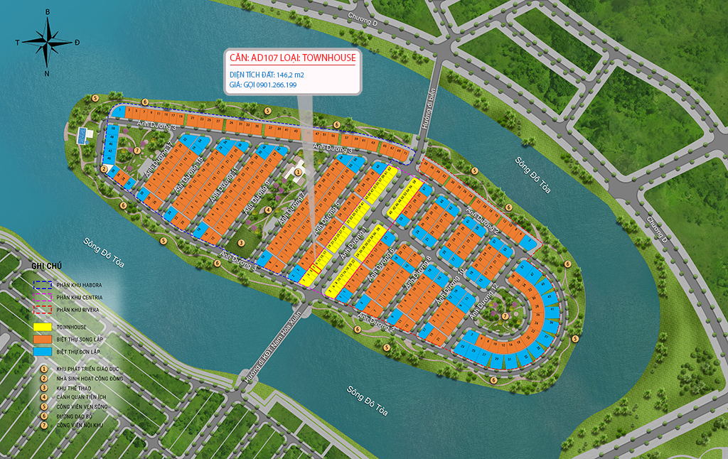 ? Nằm ngay trục đường thông chính trung tâm của đảo Sunneva Island, thông thẳng từ KĐT Nam Hòa Xuân đi vào đảo.